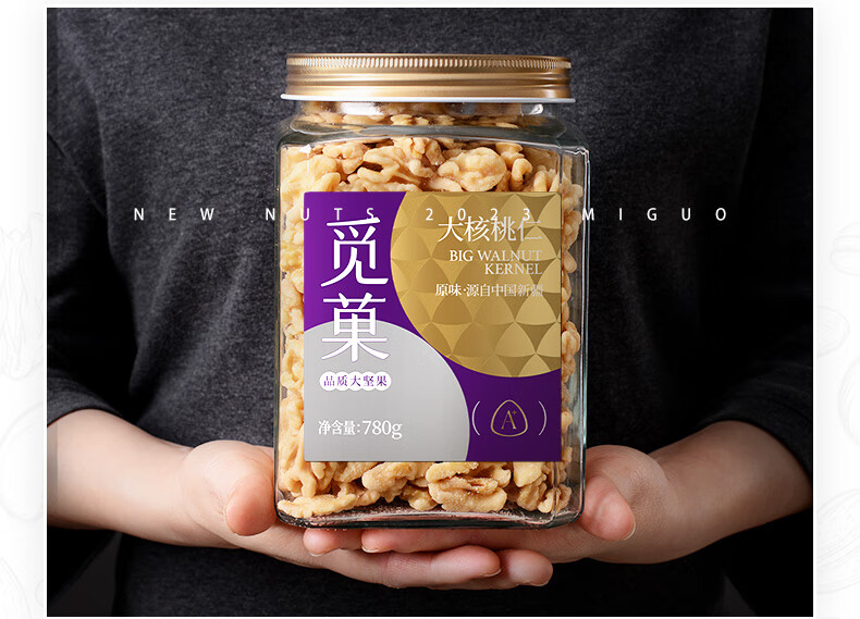 新疆核桃仁去衣特产坚果高端休闲零食780g/罐